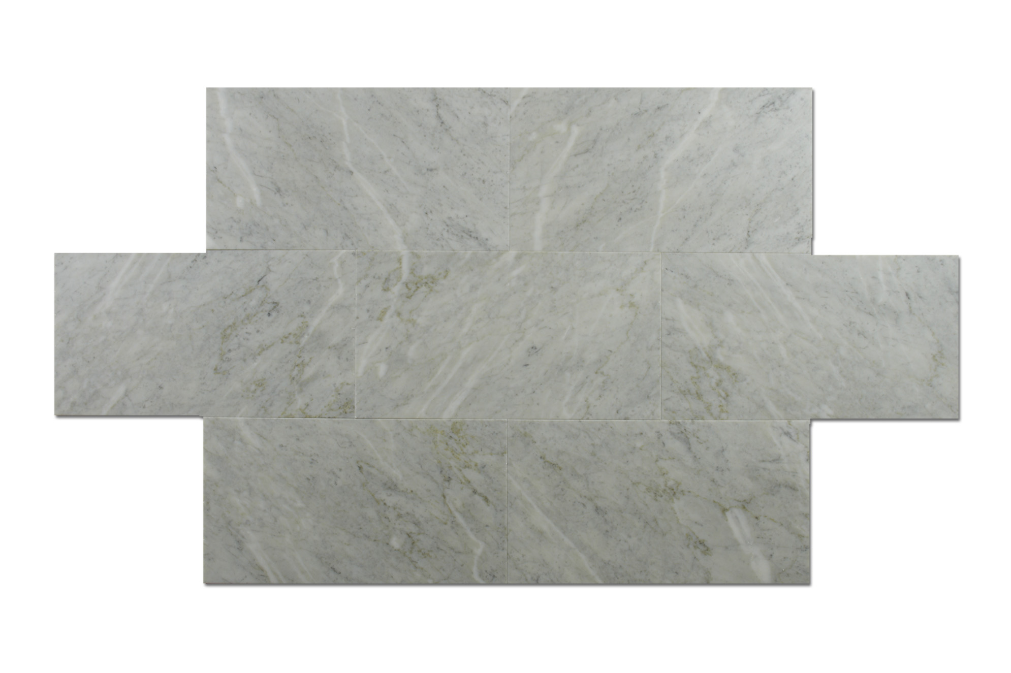 Bianco Carrara marble from Italy with subtle grey veins comes in a white base color for subtle yet modern appeal. This tile also has a polished finish for a shiny gleam emphasized in light or a honed finish for a smooth matte look.