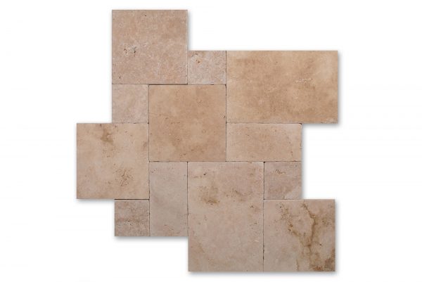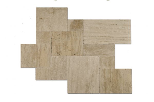 Creamy beige colored pavers for outdoor applications. It features medium shade variation and rustic characteristics. Available in vein cut or cross cut.