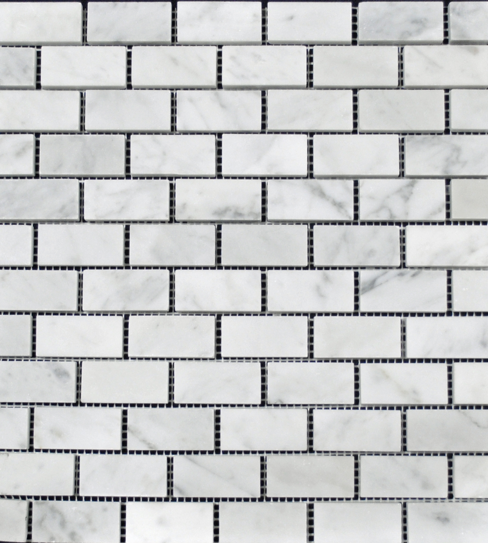 Carrara White 1×2 marble from Italy has a base color of white with grey accents that emphasize its color exposure. It also has a polished finish for a glassy look or a honed finish for a smoothed look.