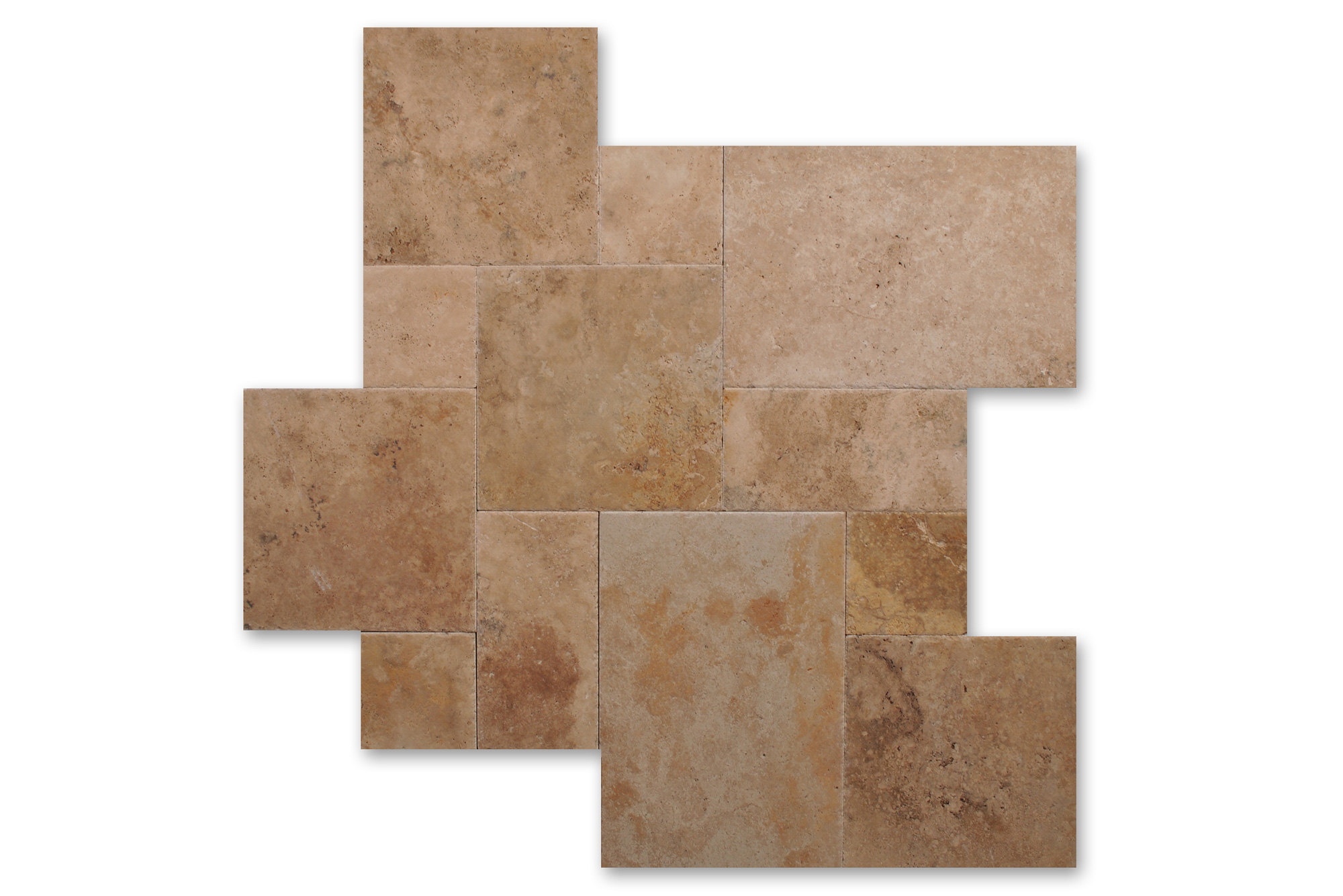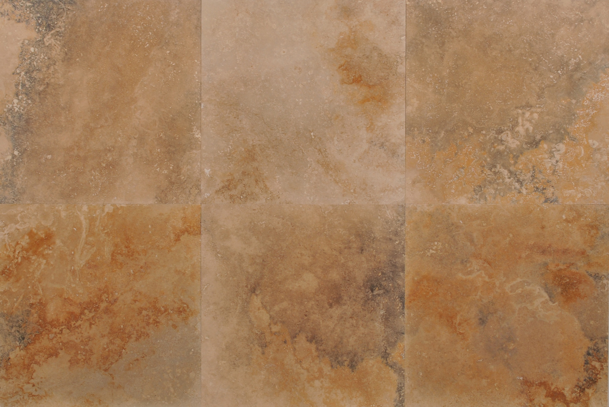 Golden Rustic travertine from Turkey comes in a base color of beige with golden highlights that detail this tile nicely. This piece also has a brushed & chiseled finish for an unfilled rougher surface.