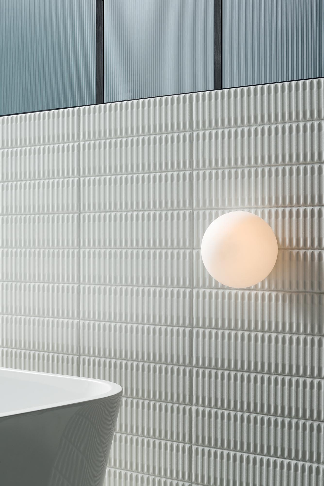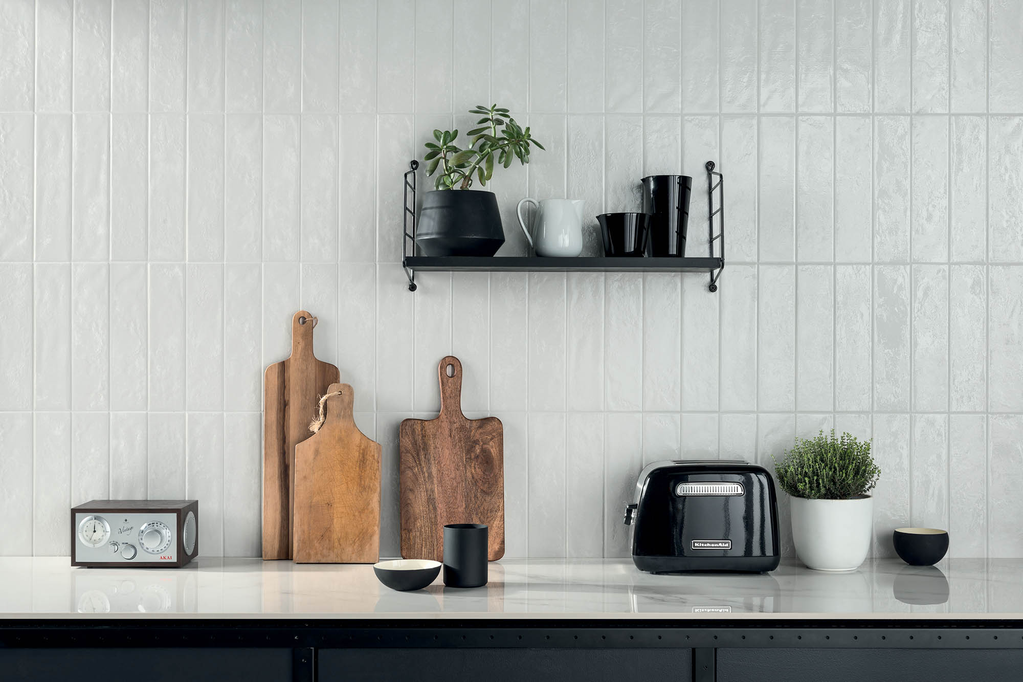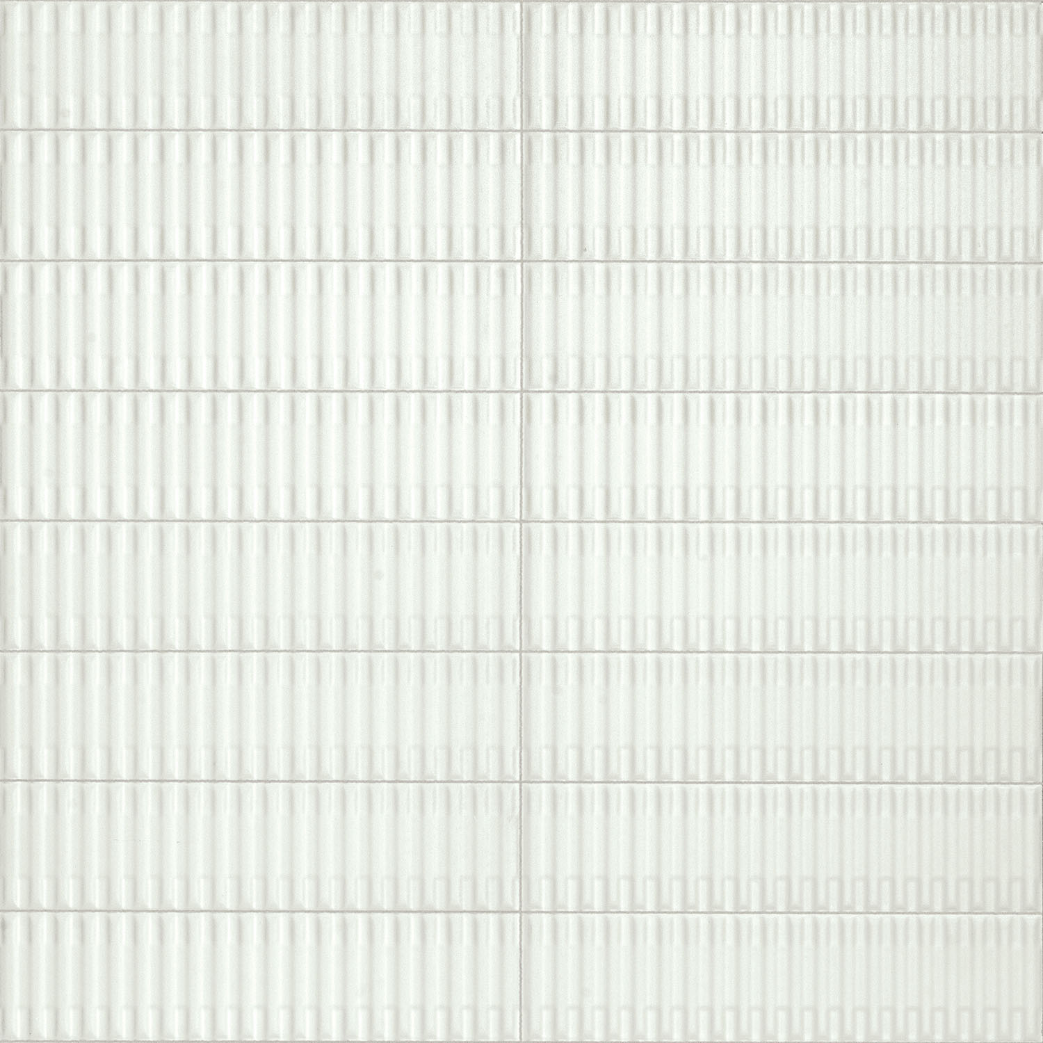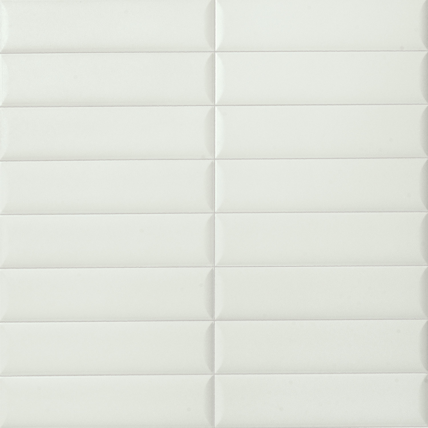 Stylishly industrial, Regoli Bianco wall tiles are available at Marmol in white color in two finishes and textures. The matte finish emphasizes the raw, artistic textures, while the glossy finish expresses the design of varying shades. Also available in 3D textures: Wide, for a softer effect, and Sticks.