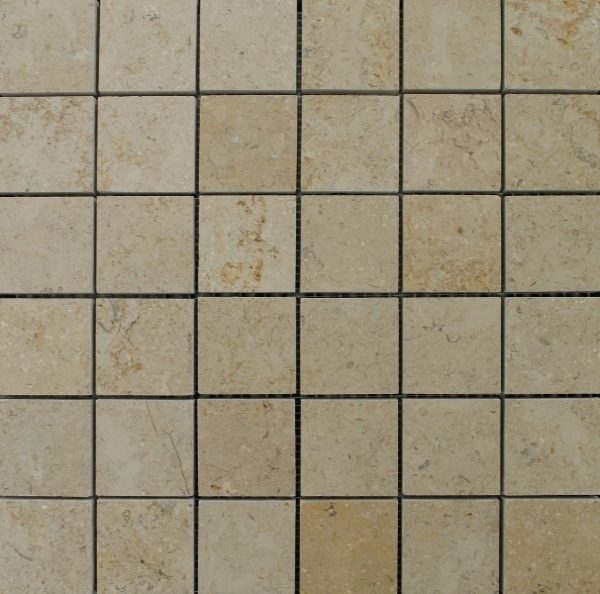Sandy Creek 2×2 Honed limestone comes in a cream color with brown for contrast. This mosaic also has a honed finish for a clean matte appearance.