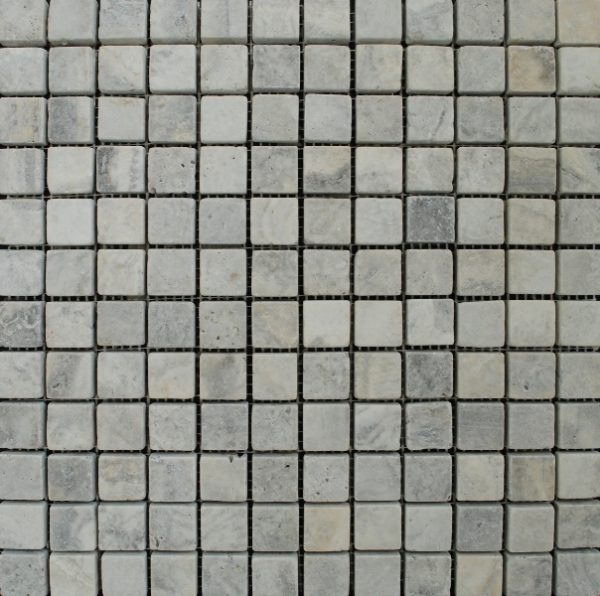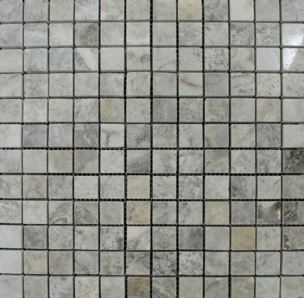 Silver 1×1 travertine comes in a Pacifica silver color with grey and black veins that give this mosaic more detail and contrast. This piece also has a polished finish for a bright shine or a tumbled finish for a smooth yet natural looking orientation.